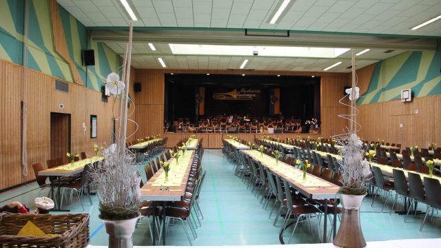 Nun kam der Tag der Tage und die Gäste stürmten in die Ollmerschhalle. Es war alles vorbereitet. Die fleißigen Helfer standen an Buffet und Theke in den Startlöchern, die Tische waren gedeckt und das Orchester saß aufgeregt und hochmotiviert auf der Bühne. Es folgte zunächst ein konzertanter Teil, in dem der Musikverein die letzten Probenarbeiten präsentierte. Das Publikum hörte aufmerksam den Klängen der Musiker zu. Es war eine gelungene Auswahl aus Marsch-Musik, verträumter und romantischer Klänge aus den Stücken „My Dream“ von Peter Leitner und „Tornero“, abenteuerliche Musik mit gekonnten Wechsel in Tempo und Lautstärke aus „Adventure“ von Markus Götz und der krönende Abschluss bildete ein Queen-Medley, welches jedes Musiker-Herz höher schlugen lies.