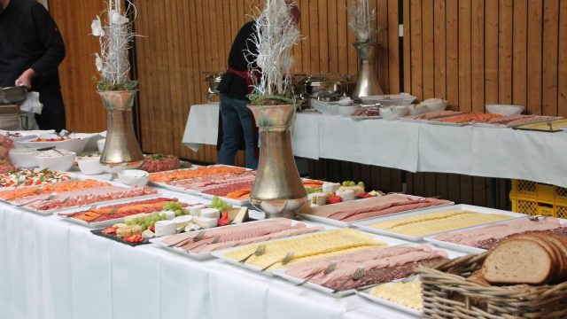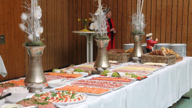 Im Anschluss wurde das Buffet von Christian Wagenbach eröffnet und das kulinarische Schlemmen begann. Der Musikverein Hundsangen spielte dabei weiterhin mit bekanntem Programm auf, aber präsentierte auch neue Stücke, wie z.B. die „Luftballon-Polka“, bei der die eine oder andere Überraschung das Publikum zum Lachen brachte. Der Musikverein war vom Publikum schlichtweg begeistert, denn oft wurde zwischen den Gängen zum Buffet mitgeschunkelt, mitgesungen und kräftig applaudiert. Am Ende wurde unser musikalisches Programm mit Standing Ovations in der ganzen Halle belohnt, was sogar kleine Freudentränen bei den Musikern auslöste.