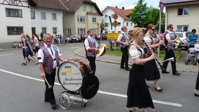 Um ca. 14.00 Uhr, an 58. Stelle des Festumzuges, startet schließlich der Musikverein Hundsangen mit 16 Musikerinnen und Musikern. Aber mit erhobenem