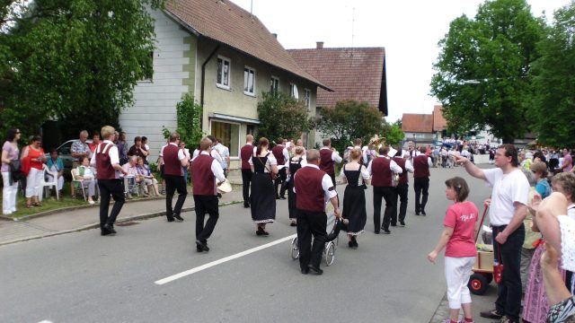 Haupt und stolzer Brust marschiert der Verein durch Legau’s Straßen und zeigt, dass man nicht nur mit der kleinen Besetzung für 50 Mann feiern kann sondern